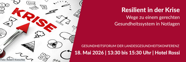 Mit der Teilnahme an dieser Veranstaltung erklären Sie sich einverstanden mit unseren Teilnahmebedingungen. Die Landesgesundheitskonferenz soll als Ort des offenen und konstruktiv-kritischen Austauschs unterschiedlicher Positionen dienen. Zur Wahrung eines respektvollen und diskriminierungsfreien Veranstaltungsrahmens, setzen wir uns für ein wertschätzendes und solidarisches Miteinander ein. Das wünschen wir uns auch von allen Teilnehmenden. Alle sollen sich bei uns sicher und willkommen fühlen. Deshalb achten wir auf eine freundliche, respektvolle und wohlwollende Kommunikation und behalten uns vor, bei diskriminierenden oder menschenverachtenden Äußerungen einzugreifen.